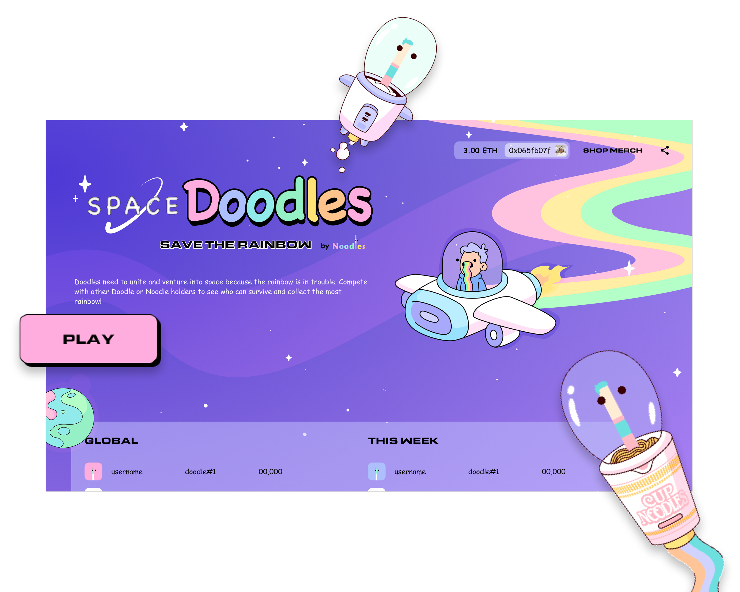Chase the Rainbow is browser-based community game crafted by NFT brand Doodles and their beloved derivative brand Noodles.